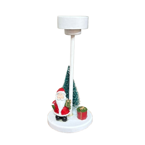 Encante sua decoração de Natal com nosso castiçal feito em poliresina, perfeito para acomodar 1 mini vela. Com acabamento detalhado e temática natalina, traz elementos festivos como Papai Noel, árvore de Natal, e presente. Ideal para enfeitar mesas, aparadores e compor cenários cheios de charme e aconchego.