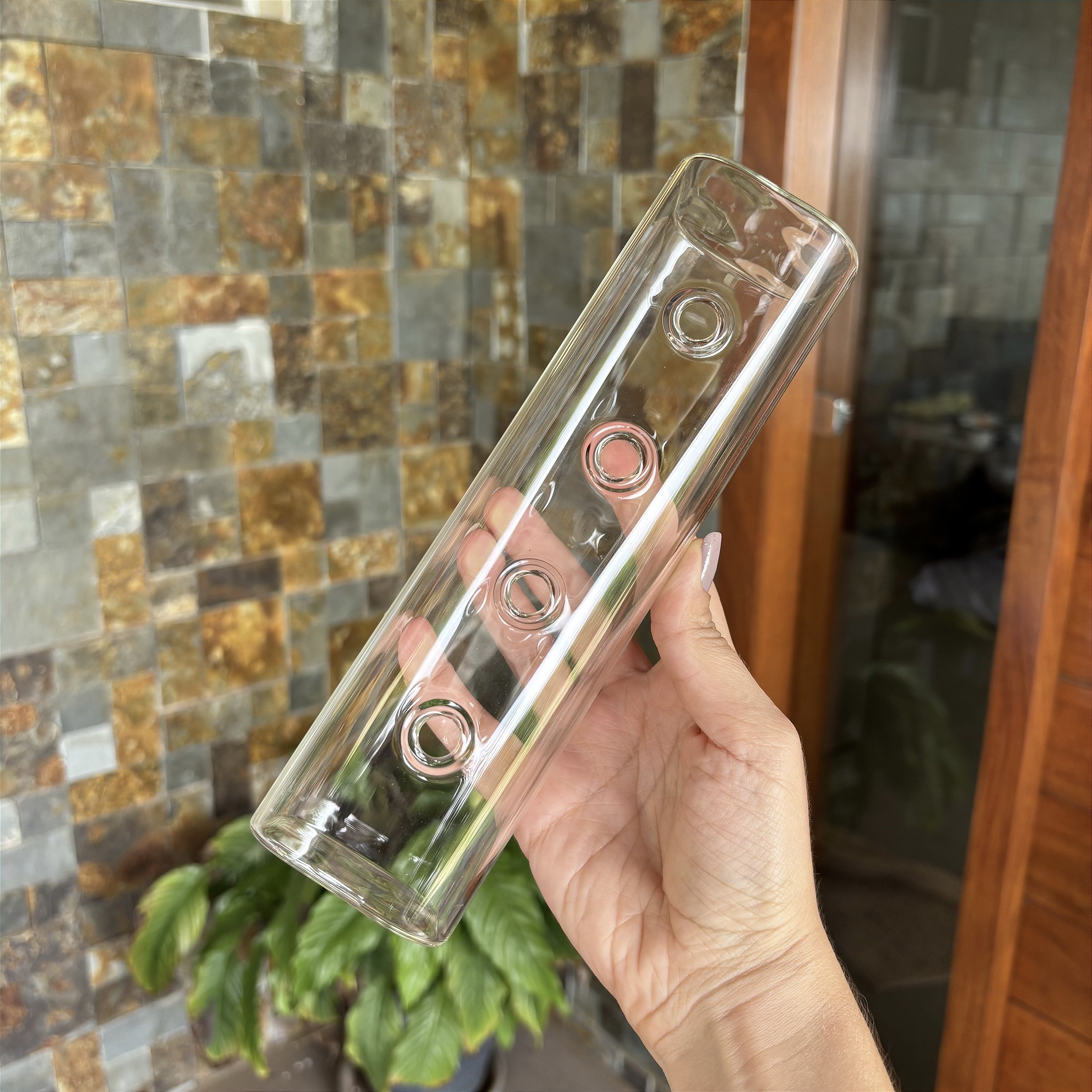 Floreira em vidro com 4 furos, medindo 6x6x22cm. Pode ser usada com flores naturais ou permanentes! Peca perfeita para quem ama criar arranjos de forma fácil e descomplicada!