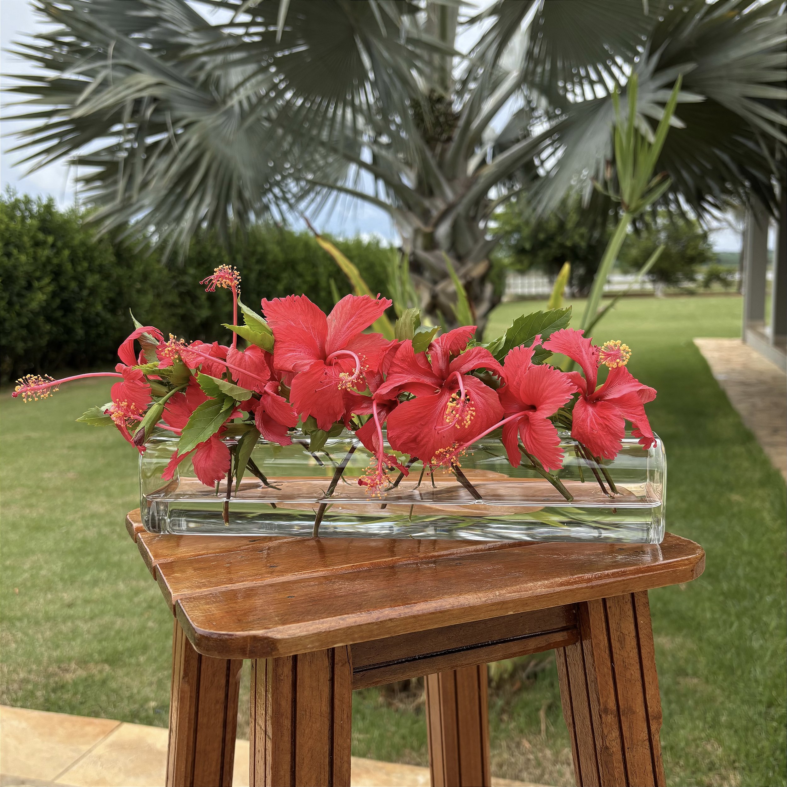 Floreira de vidro com 6 furos, medindo 6x6x30 cm. Peça perfeita para quem ama praticidade na hora de montar arranjos únicos, cheios de personalidade e modernos!