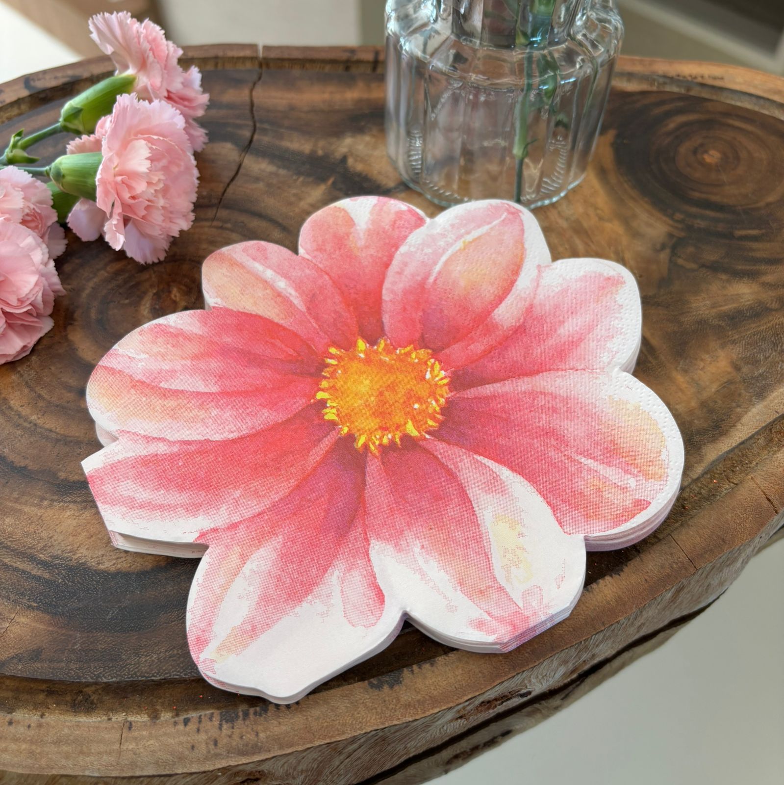 Pacote de guardanapo de papel em formato de flor com 20 unidades. Perfeito para quem busca uma mesa cheia de vida, com a praticidade do guardanapo de papel, sem perder o charme!