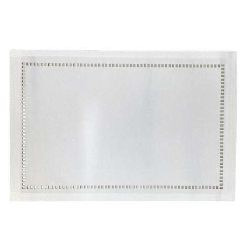 Jogo americano em poliéster na cor branca. Perfeito para quem busca uma peça de qualidade, sofisticada e duradoura. Pode ser usado dos dois lados e possui detalhes na borda de corte a laser que valorizam ainda mais a peça quando está na mesa.