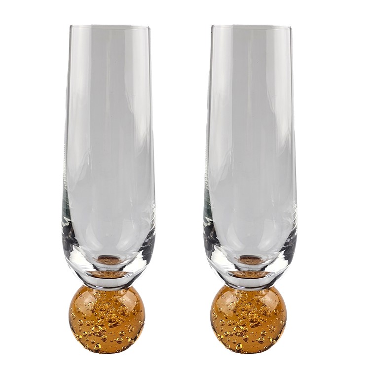 Kit com 2 taças modelo bola na base, para champanhe, cor mel. Taça que traz tendência, modernidade e sofisticação para sua mesa!