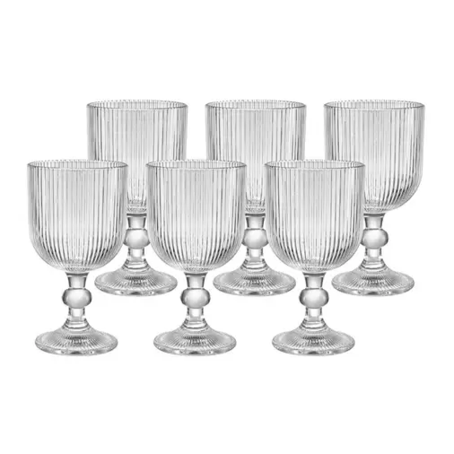 Kit com 6 taças em vidro com textura. Cada taça tem a capacidade de 350 ml.