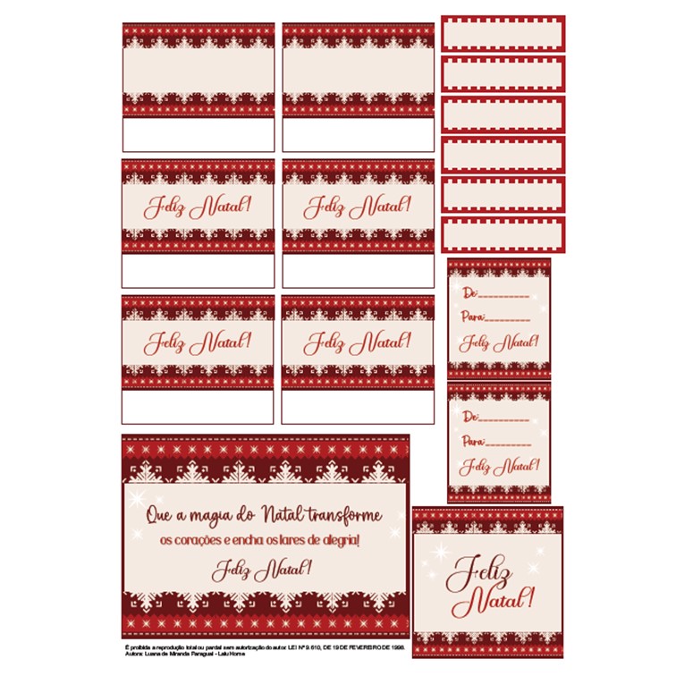 Papelaria de Natal modelo 3, que contém 16 tags conforme foto. Após a compra, o cliente pode escolher se quer receber o arquivo digital (em PDF), ou impresso (junto com o restante do pedido).