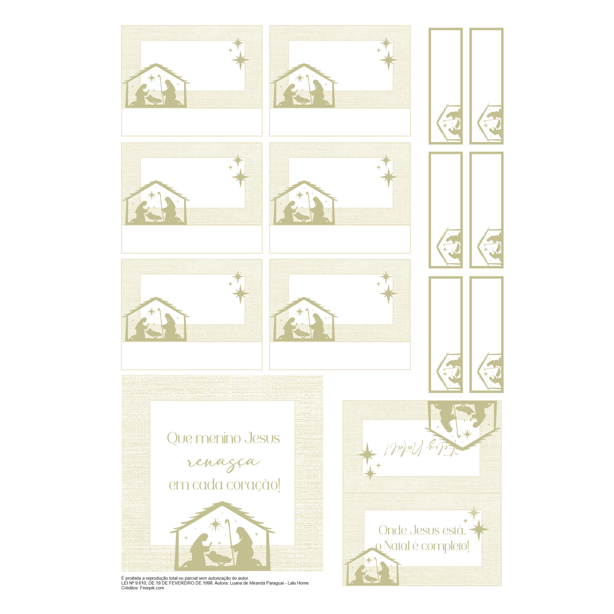 Papelaria de Natal modelo 6, que contém 14 tags conforme foto. Após a compra, o cliente pode escolher se quer receber o arquivo digital (em PDF), ou impresso (junto com o restante do pedido).